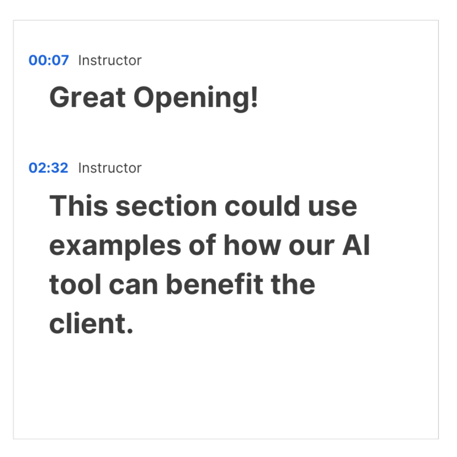 Bongo provides instant AI coaching with optional manager feedback to help refine messaging, confidence, and delivery.