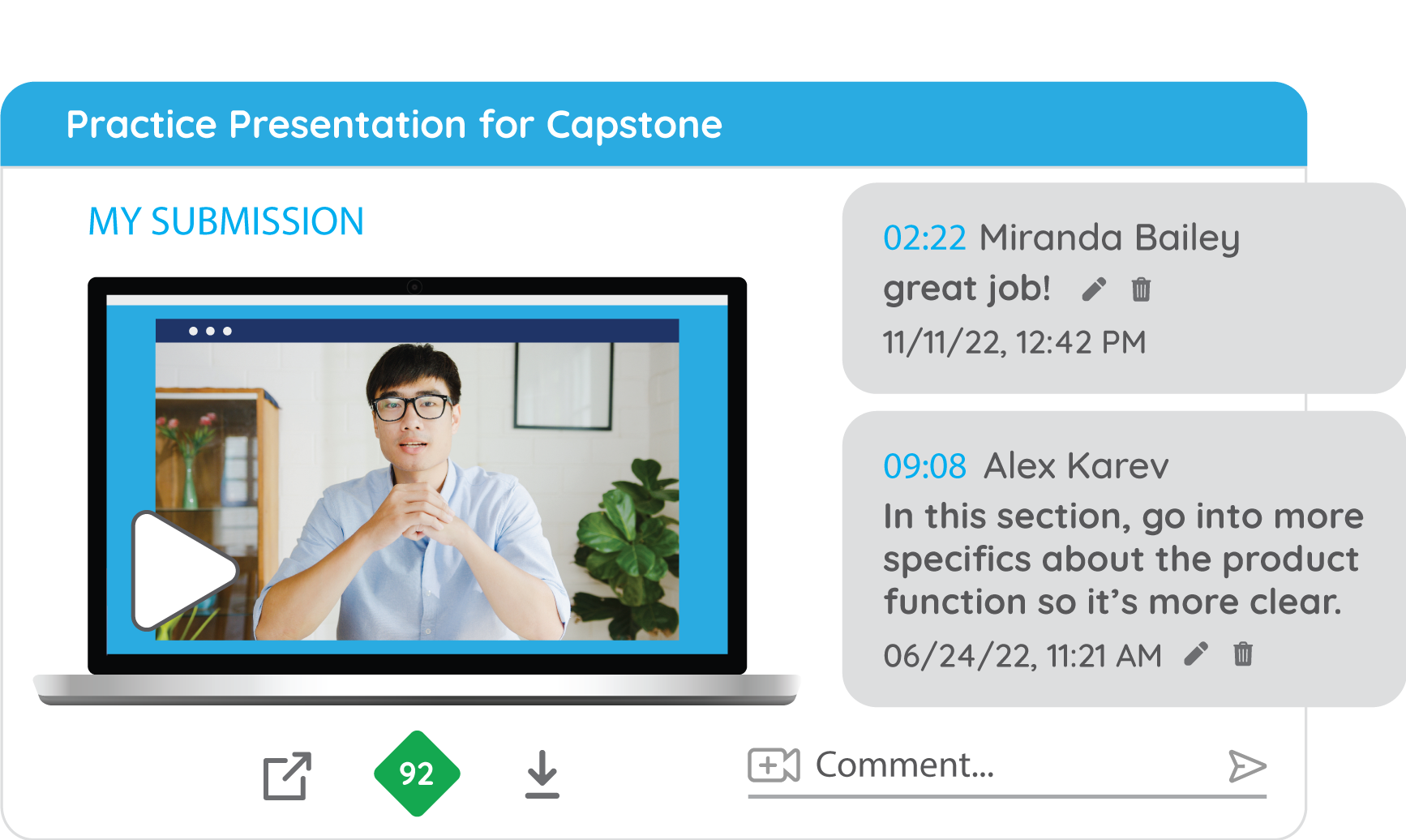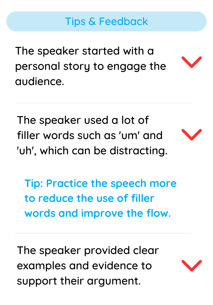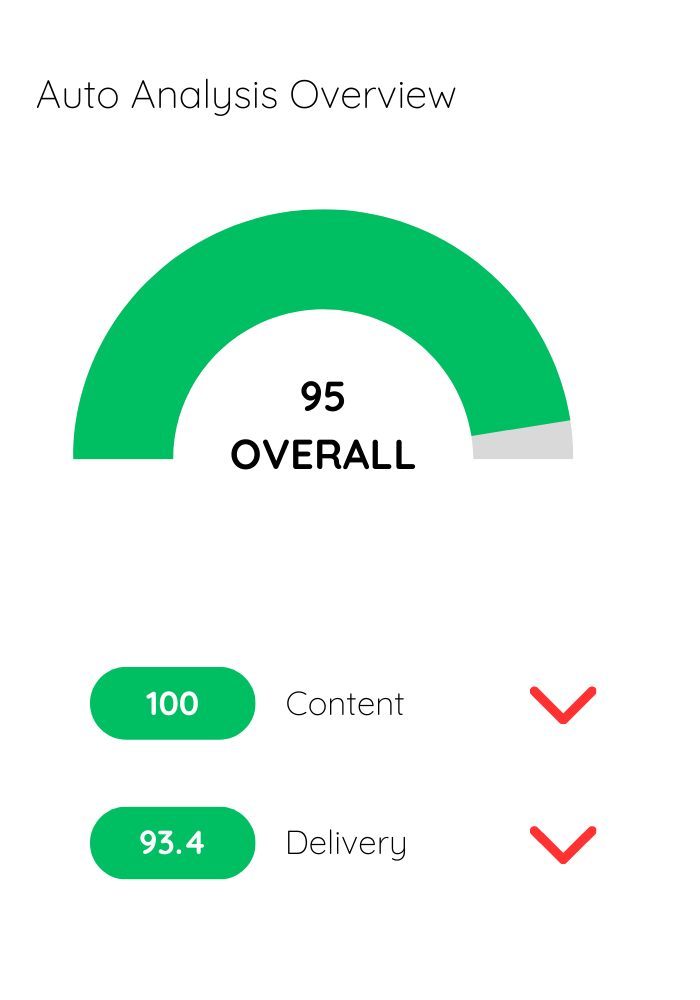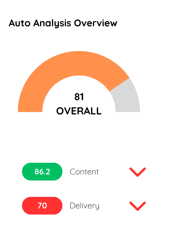 Let AI handle common feedback suggestions such as clarity, use of filler words, key terms, and more so you can focus on the level of subject-matter expertise only you can provide.